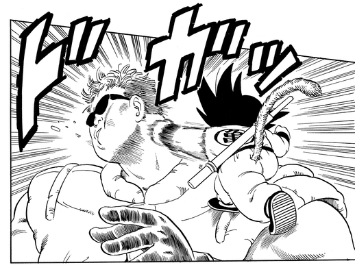 Major Metallic versetzt zur Begrüßung einen kräftigen Schlag, dem Goku jedoch mühelos ausweicht.