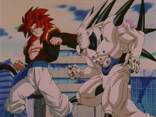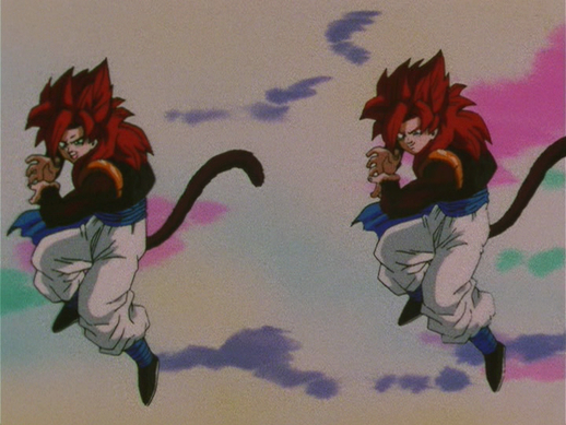 Gogeta ist das Ergebnis der Fusion zwischen Super Saiyan 4, Goku und Vegeta, die durchgeführt wurde, um Yi-Shinron zu besiegen. Er ist der ultimative Fusion , dessen Kraft die der beiden einzeln bei weitem übertrifft.