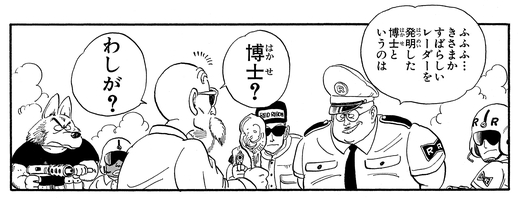 Dock landet zuversichtlich sein Flugzeug in Kame House, da er glaubt, dass die Basis mit nur einem alten Mann und einer alten Frau dort leicht zu handhaben sein wird. Als Dock jedoch versucht, das Dragon Radar von Kamesennin, den er für den Erfinder hält, gewaltsam zu bekommen, wird er durch einen einzigen kräftigen Schlag in den Magen niedergeschlagen!