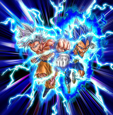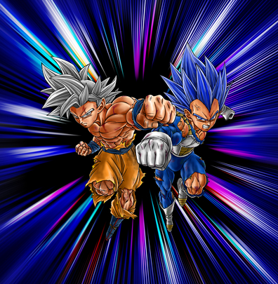 Diese ganz besondere, spannende Illustration zeigt Ultra Instinct Goku und den Super Saiyan God Super Saiyan (Evolved) Vegeta Seite an Seite, wie sie ein paar kräftige Schläge austeilen!