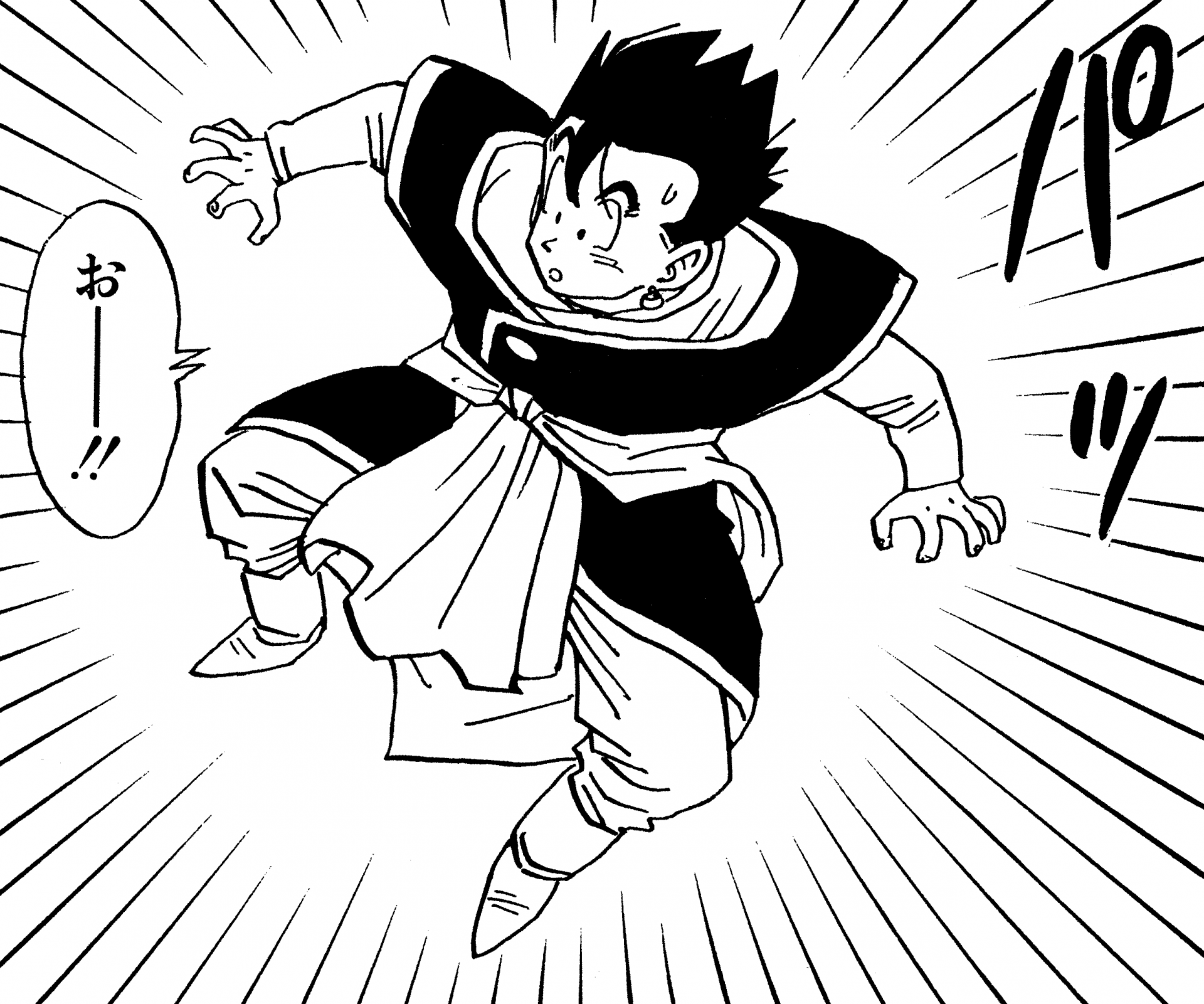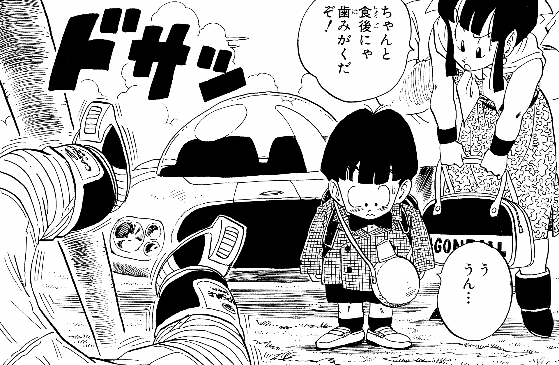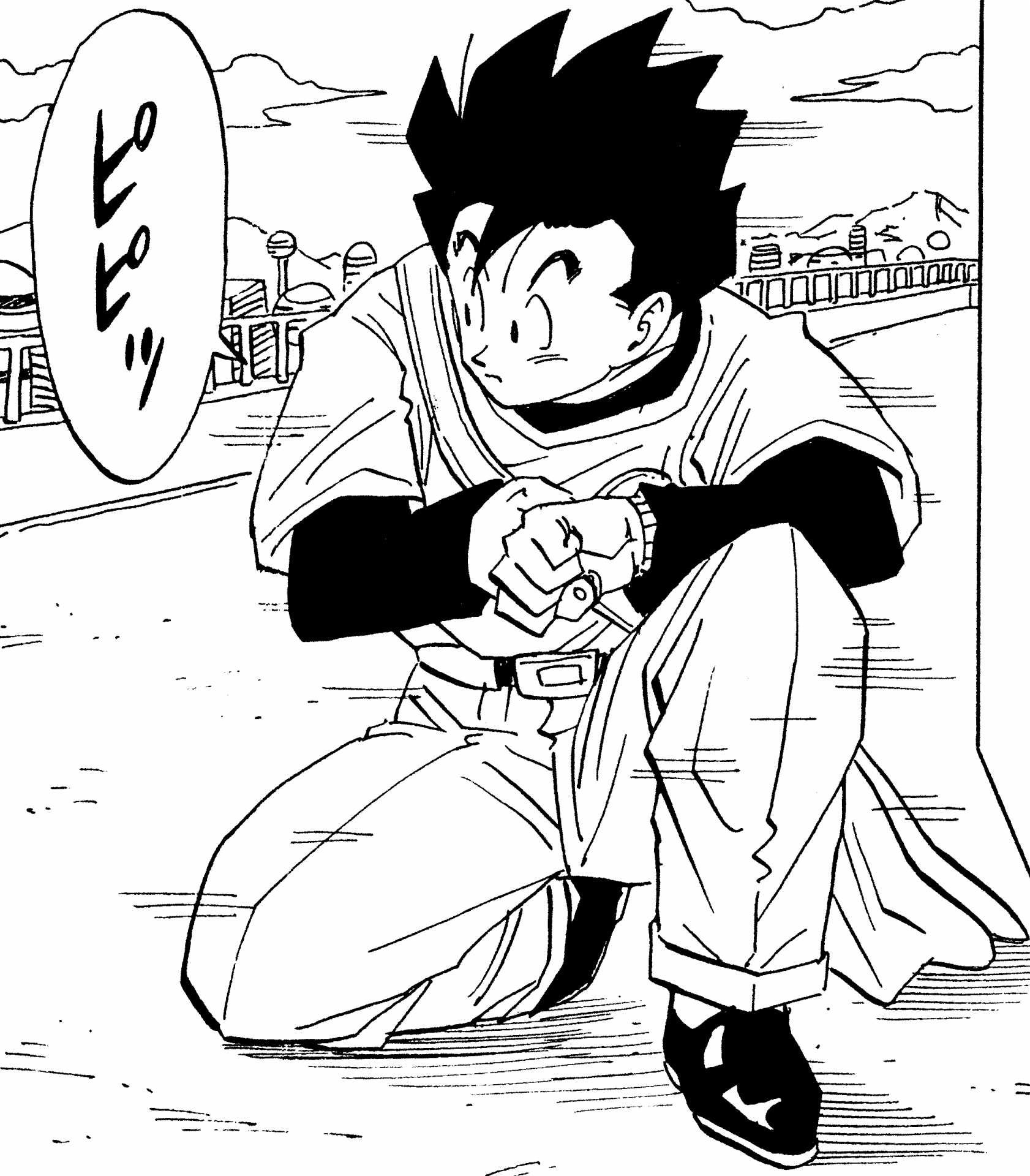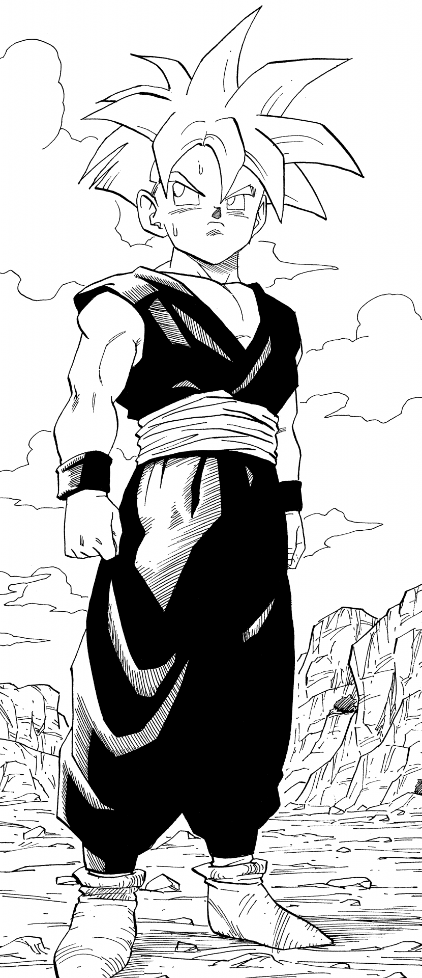 Hier genießt Gohan ein Familienpicknick vor den Cell Games! Seine weiße Kung Fu Kleidung sieht super cool aus.