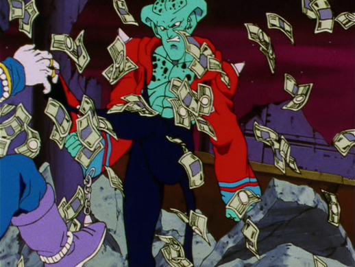 Obwohl Goku und Redgic ihren Streit einvernehmlich beenden, sucht Don Kia verzweifelt das in seinem Büro verstreute Geld zusammen und bietet es Redgic an. Er fleht: „Ich habe das für dich aufgehoben ... mach es fertig, und es gehört alles dir!“, worauf Redgic antwortet: „Hat dir deine Mutter das nicht gesagt? Geld ist nicht alles!“