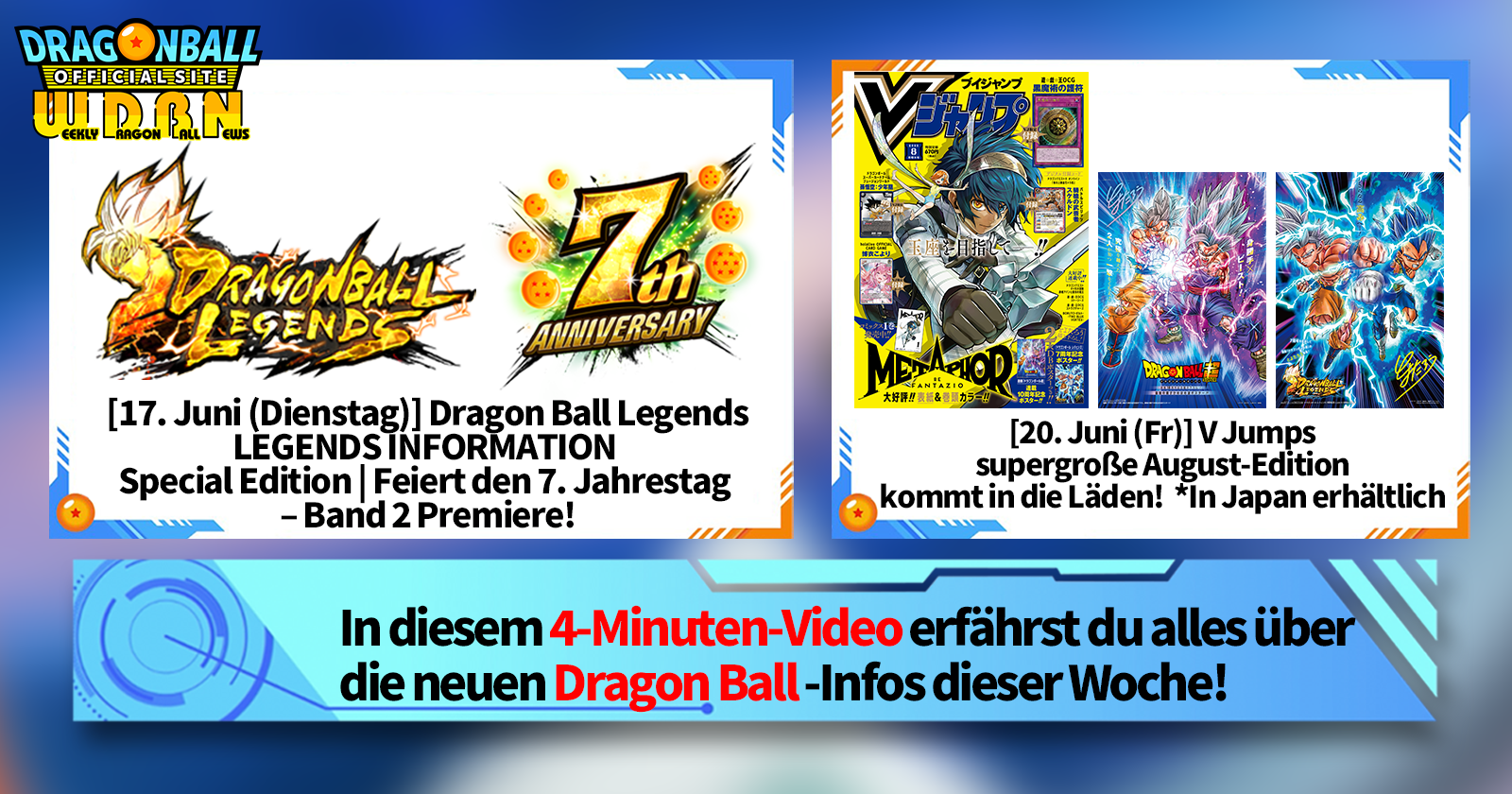 „Weekly Dragon Ball News“ ist eine Videoserie, die jeden Montag (JST) aktualisiert wird und Ihnen die aktuellsten Neuigkeiten aus der Welt von Dragon Ball bietet! Begleiten Sie V Jump -Redakteur Victory Uchida, der über die heißesten Neuigkeiten der vergangenen Woche berichtet und aktuelle Updates wie Produktinformationen und Site-Neuigkeiten für die kommende Woche präsentiert!