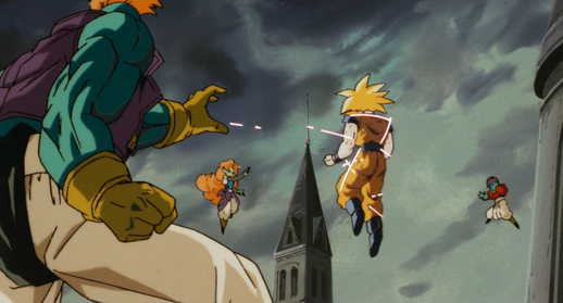 Wütend über die Niederlage seiner Freunde verwandelt sich Gohan in einen Super Saiyan. Doch dann wird er von Zangya und ihren beiden Freunden in die Enge getrieben und Piccolo greift in letzter Minute ein, um sie aufzuhalten.