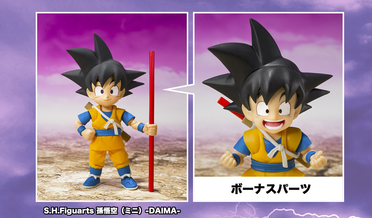 Diese Figur enthält außerdem ein austauschbares Bonus-Gesichtsteil für S.H.Figuarts Goku (Mini) -DAIMA- (separat erhältlich)!