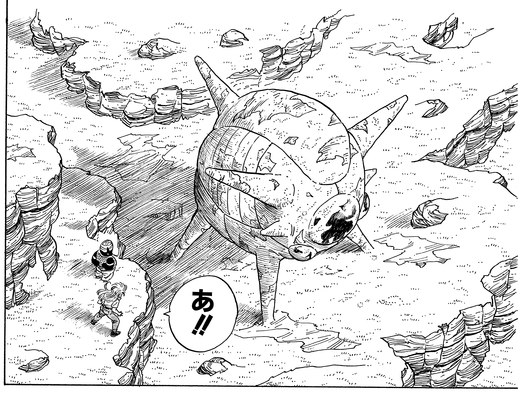 Das bringt uns zur Gegenwart, wo endlich Piccolos eigentliches Haus enthüllt wurde!! Umgeben von Felsen und Bäumen, ist es nicht einfach der perfekte Ort für den einsamkeitssuchenden Piccolo?! Ich kann nicht darüber hinwegkommen, dass er selbst an einem so abgelegenen Ort noch einen Briefkasten hat! Das Haus wurde von Toriyama entworfen und würde auf dem Planet Namek nicht im Geringsten fehl am Platz sein, da es insbesondere eine auffallende Ähnlichkeit mit Saichoros Behausung aufweist.