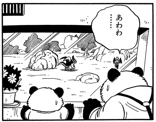 Von ihrem Zuhause aus beobachtet die Panda-Familie voller Schock und Angst, wie der gewalttätige Raufbold Giran mühelos überwältigt wird.