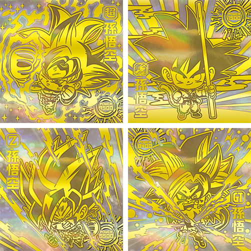 Zusätzlich zu den Kampagnenaufklebern gibt es noch viele andere coole Aufkleber! Sie können verschiedene Formen von Goku in "Gold God Rare" erhalten, sowie mehr Ihrer Lieblingskämpfer, die ihre Bewegungen in "Attack Rare" zeigen, das einen großen Druck ihrer Angriffsnamen enthält! Das Lineup enthält auch Aufkleber mit den Eröffnungsszenen des TV-Anime "Dragon Ball GT" und berühmten Szenen aus dem Film "Dragon Ball Super: Broly"!