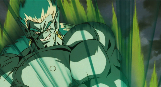 Vegeta trifft kurz darauf ein, um Trunks zu Hilfe zu kommen, wird aber von Bojack mit einer Flut wilder Angriffe verfolgt und entfesselt dann sein Ki, um sich zu verstärken.