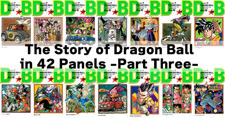 Diese Artikelserie startete am 20. November, dem Jahrestag der Erstveröffentlichung von Dragon Ball. Wir zeichnen hier die Reise von Goku und seinen Freunden nach, indem wir jeweils ein Panel aus jedem der 42 Bände von Jump Comics' Dragon Ball auswählen. Im ersten Teil behandelten wir die Ereignisse von Gokus Aufbruch zu seinem großen Abenteuer mit seiner neuen Freundin Bulma bis zu seinem Sieg über den Great Demon King Piccolo. Der zweite Teil widmete sich Gokus Sieg beim 23. Tenkaichi Budokai bis zu seinem Triumph über Frieza auf Planet Namek.