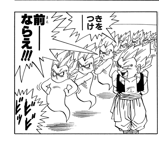 Piccolo bringt Super Buu vor Goten und Trunks, die im Room of Spirit and Time trainiert haben. Zu Beginn des Kampfes fusionieren die beiden zu Gotenks und setzen eine Reihe interessanter Techniken ein, die ihre kindliche Fantasie eindrucksvoll unter Beweis stellen. Darunter ist der Super Ghost Kamikaze Attack 10-Ghost Finish“, der Geister erzeugt, die beim Aufprall explodieren. Sieh ihn dir in Aktion im folgenden Panel an!