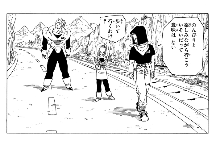 Auf ihrer Suche nach Goku wählt Android 17 überraschenderweise einen weniger effizienten Weg. Diese Szene zeigt eine unerwartet menschliche Seite an Android 17, was Android 18 in einem späteren Panel kommentiert. Um der Androiden-Bedrohung zu begegnen, beschließt Piccolo , mit Kami zu fusionieren. Doch was unsere Helden nicht ahnen: Ein monströses Wesen aus der Zukunft ist eingetroffen und erwacht zum Leben.