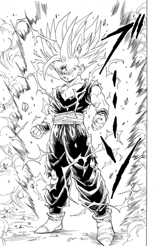 Gohans wahre Kraft ist nun entfesselt und seine Super-Saiyan 2 -Form erwacht. Beim Anblick eines Kriegers, der selbst Gokus Stärke übertrifft, ist Cell entsetzt und bemerkt: „Er hat sich verändert …“ Gohan schaltet zunächst die Cell Junioren aus, die seine Gefährten beunruhigen, bevor er sich Cell erneut stellt.
