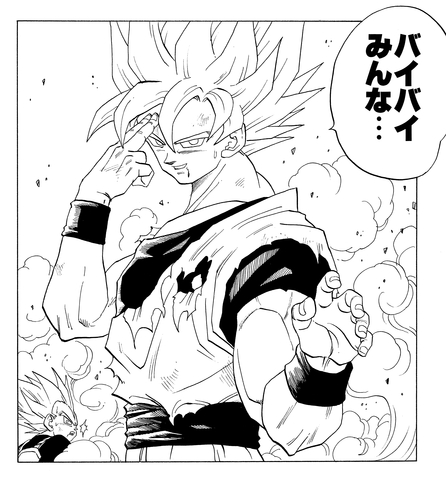 Auf Vegetas Vorschlag hin, mit der Hilfe von Nord-Kai und dank Mr. Satans Unterstützung, der die Erdenbevölkerung mobilisierte, konnte Goku eine gewaltige Genki-Dama erschaffen und sie auf Majin Buu (Pure) abfeuern, wodurch dieser vollständig vernichtet wurde. Goku hoffte, dass Majin Buu eines Tages wiedergeboren würde und sie einen Rückkampf austragen könnten, und verabschiedete sich mit einem fröhlichen „Bis dahin!“, was Gokus wahren Charakter als kampflustiger, aber bis zum Schluss sanftmütiger Saiyan unterstrich.