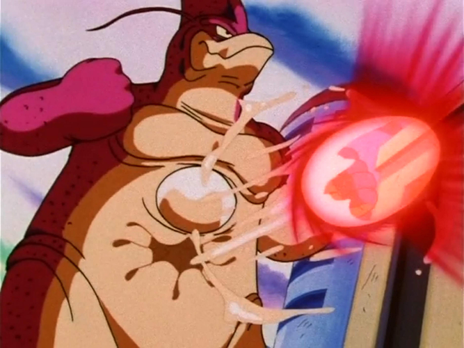 Doch Goku hatte keinerlei Auswirkungen, denn er hatte sich in einen Super Saiyan 4 verwandelt. Als Goku eine zehnfache Kamehameha entfesselte, schien der Kampf für Wu-Shinron beendet. Doch der Angriff prallte einfach an seinem weichen, schleimigen Körper ab.