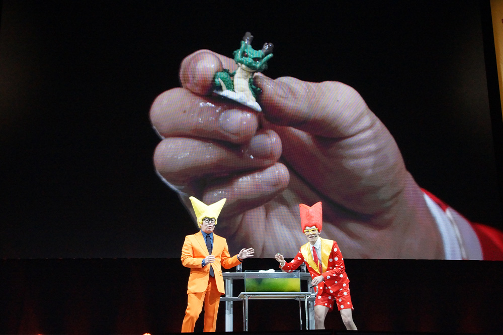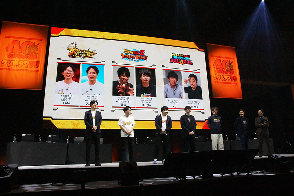 Die Produzenten von Dragon Ball Z Dokkan Battle, DRAGON BALL LEGENDS und DRAGON BALL GEKISHIN SQUADRA traten gemeinsam zu einem dreifachen Titelkampf auf! Unterstützt wurden sie von den Stargästen und Dragon Ball Fans Rie Ishikawa und dem Tokyo Hoteison-Duo, die in DRAGON BALL GEKISHIN SQUADRA packende Kämpfe austrugen! Nach einem intensiven Schlagabtausch ging das Gastteam als Sieger hervor! Die Teammitglieder klatschten sich jubelnd ab, während das Publikum in tosenden Applaus ausbrach!
