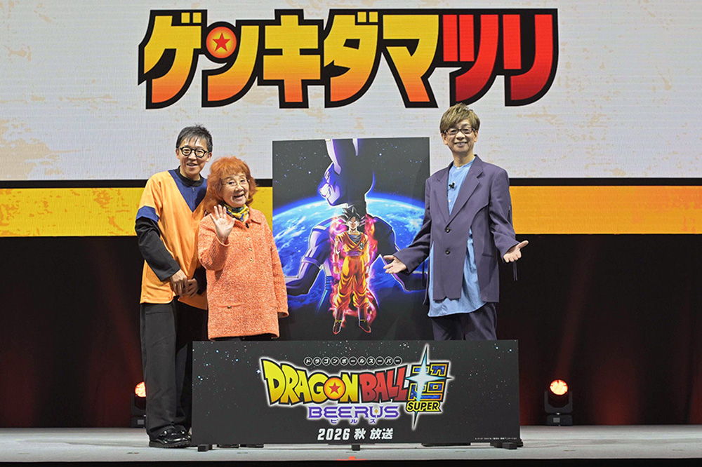 Masako Nozawa, Akio Iyoku und der Synchronsprecher von Beerus, Koichi Yamadera, erschienen alle auf der Bühne! Nachdem sie den Ankündigungstrailer zu Super gesehen hatten, äußerte Frau Nozawa begeistert ihre Überraschung darüber, während Herr Yamadera seine Freude darüber zum Ausdruck brachte, Beerus in einem noch cooleren Stil dargestellt zu sehen!