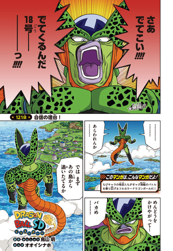 Diese Ausgabe präsentiert Dragon Ball SD auf dem Cover, und der Cell -Arc nimmt Fahrt auf! Goku und Vegeta scheinen förmlich aus dem Bild zu springen! Außerdem enthält sie holografische Dragon Ball SD Sticker (Goku, Piccolo, Android 17 und Android 18)! Diese Sticker sind echt cool und wurden von Naho Ooishi persönlich illustriert!