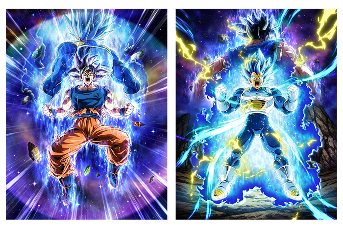 Rechts: "[Herausforderung des Stärksten der Starken] Super Saiyan God SS Evolved Vegeta + Goku (Ultra Instinct -Sign-)"