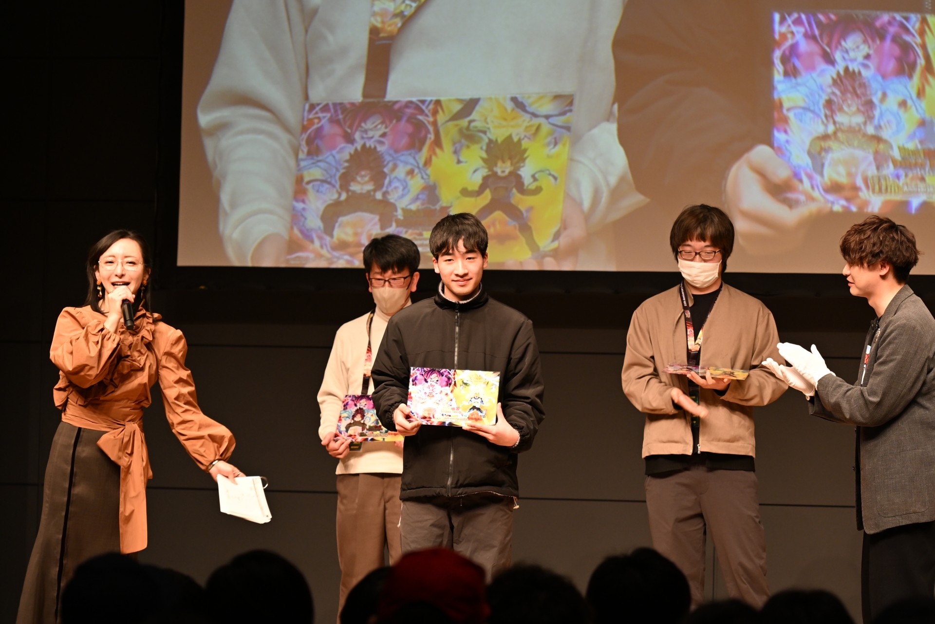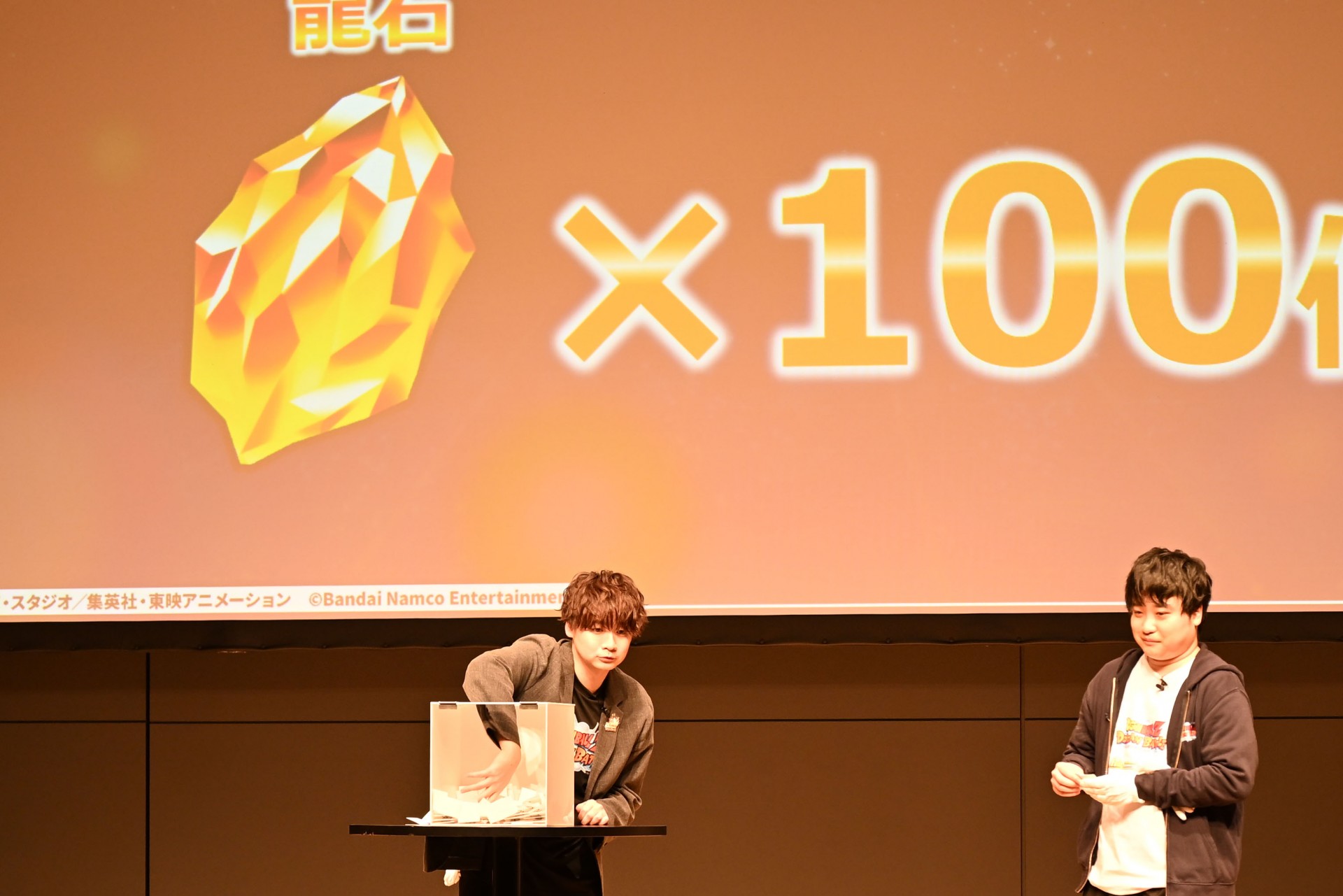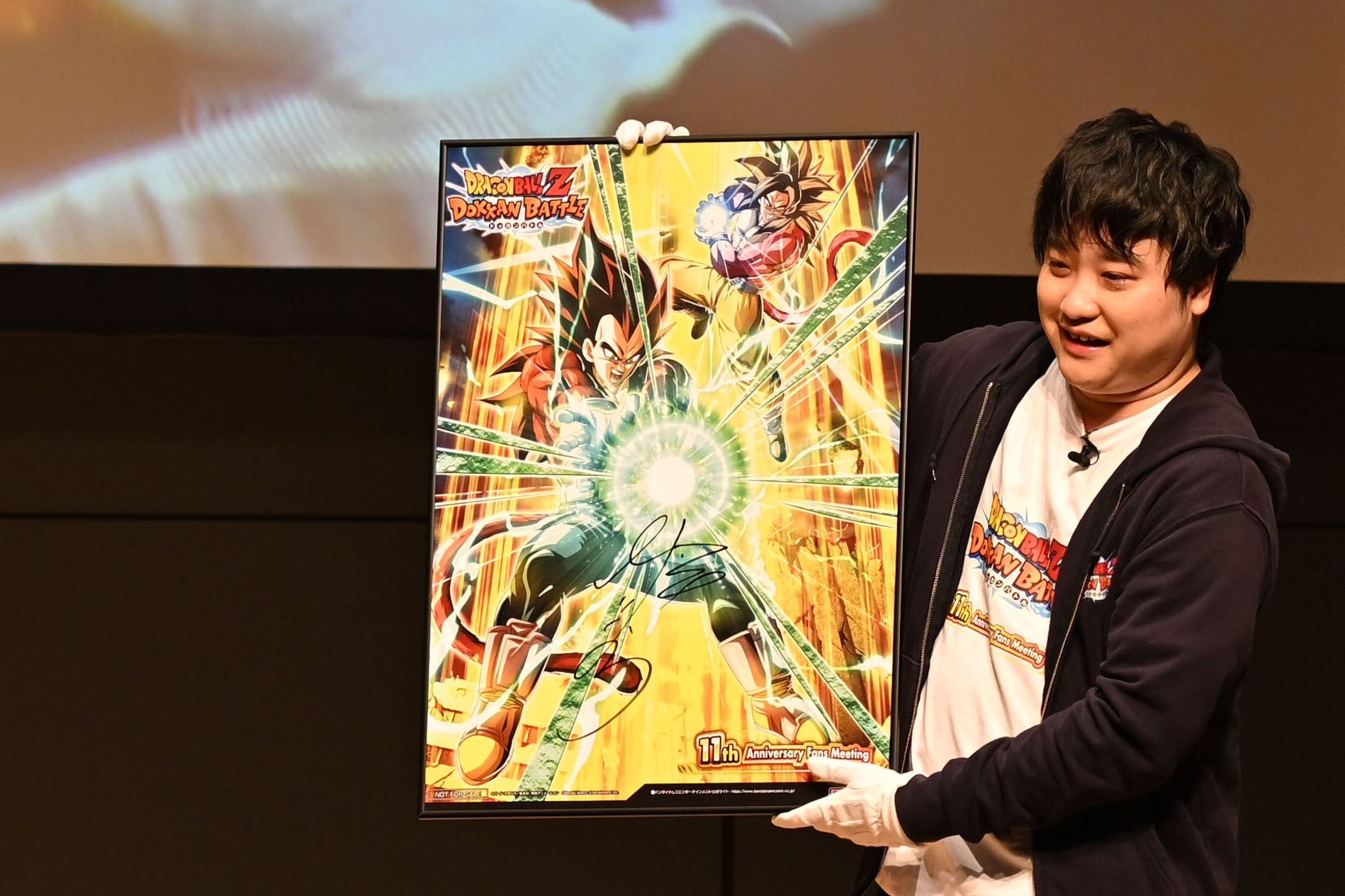 Als nächstes stand die Verlosung für alle Anwesenden an! Die Anwesenden gerieten in helle Aufregung, als die Gewinner für eine Reihe von Preisen bekannt gegeben wurden, darunter exklusive Dokkan Battle Artikel, die nur an diesem Veranstaltungsort erhältlich waren, ein besonderer Preise von 100 Drachensteinen und ein Poster, das vom Synchronsprecher von Vegeta, Ryo Horikawa, signiert war!