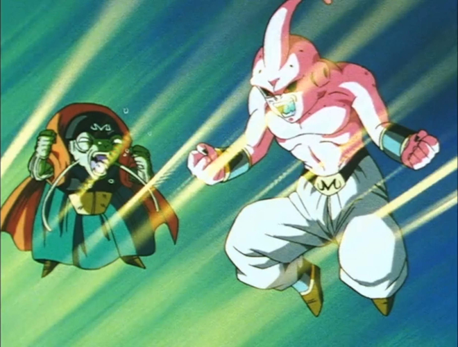 Sobald er diesen Satz ausspricht, kann er sich augenblicklich teleportieren, was er nutzt, um Buus Angriff auszuweichen.