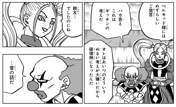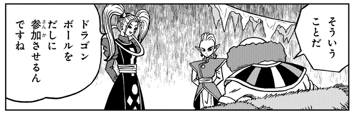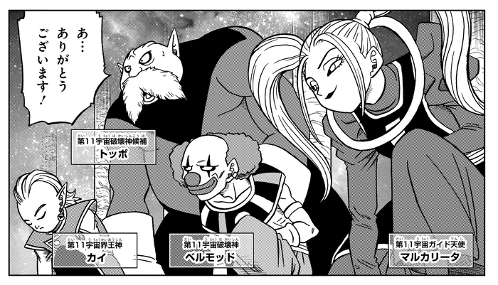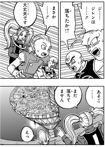 Während andere Universen nacheinander ausgelöscht werden, verbünden sich Goku und Vegeta , um gegen Jiren anzutreten, der in die nächste Runde eingezogen ist. Als Belmod Jirens Meister Gicchin zitiert und beklagt: „Er wird nie wissen, wann es brenzlig wird und er auf andere angewiesen sein wird“, deutet Marcarita auf ihre verborgene Vergangenheit an, indem sie bemerkt: „Und doch wart ihr zwei Freunde.“