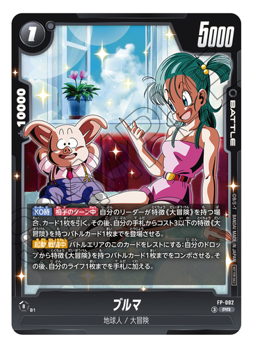 Die Bonuskarte „ Fusion “ dieser Ausgabe ist eine schwarze „Bulma“-Kampfkarte! Sie harmoniert perfekt mit der „Bulma“-Anführerkarte aus dem Booster-Set MANGA BOOSTER 01 [SB01] und ist zudem eine günstige und einfach zu spielende Karte! Diese Ausgabe präsentiert außerdem einige Deckbeispiele, mit denen du diese Bonuskarte optimal nutzen kannst! Schau dir unbedingt die Fähigkeiten „Kampf aktivieren“ und „Bei K.O.“ an, mit denen du kinderleicht Kombos erstellen kannst!