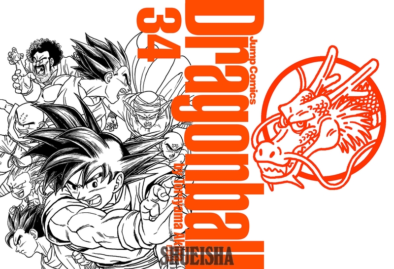 Hier ist die Strichzeichnung für das Cover von Band 34, dem letzten Band der Dragon Ball Complete Edition. Sie besticht durch ihre beeindruckende Dynamik und springt einem förmlich ins Auge, noch bevor sie koloriert ist. Anstatt einfach nur schwarz ausgefüllt zu sein, sind die Linien und Schattierungen der Haare sorgfältig ausgearbeitet und zeugen von einer beeindruckenden Liebe zum Detail.