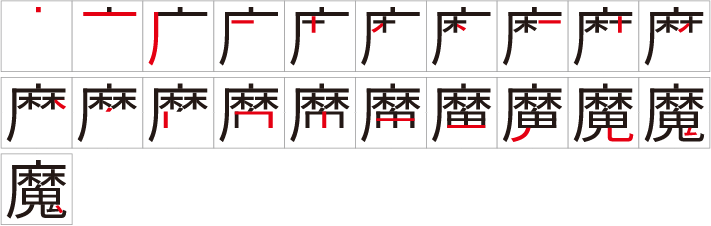 Werfen wir einen Blick auf die Lesungen, Bedeutungen und Strichreihenfolgen.