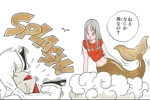 Die schöne Frau, die Goku fand, war jedoch tatsächlich eine Meerjungfrau! Verblüfft , aber Kamesennin, versuchte Kamesennin, mit seinem neuen Gast ein wenig zu geschickt zu werden und bekam stattdessen einen ordentlichen Schlag ins Gesicht, um sich an sie zu erinnern, bevor sie zurück ins Meer tauchte.