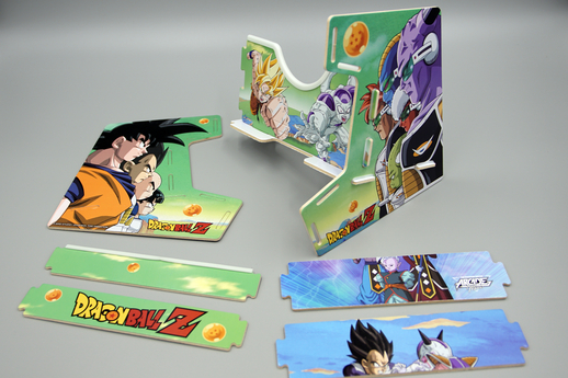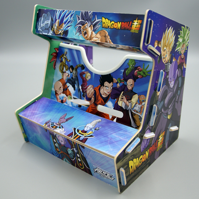 Es stellt sich heraus, dass einige Teile auf jeder Seite unterschiedliche Grafiken aufgedruckt haben, sodass Sie Ihr Setup so anpassen können, wie Sie es möchten! Das Design, das wir zum ersten Mal sahen, als wir die Schachtel öffneten, war der Kampf um Planet Namek, aber hier können Sie auch Illustrationen sehen, die vom Tournament of Power Bogen von Dragon Ball Super inspiriert sind! Du kannstSchalterVerschönern Sie das Look Ihres Arcade-Schrank nach einer Laune, oder vielleicht verleihen Sie Sie ihm sogar einen anderen Look für unterschiedliche Spiele!