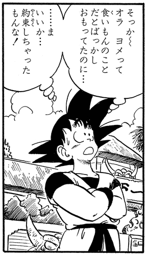 Es stellt sich jedoch heraus, dass die junge und weltfremde Goku immer dachte, dass sie davon sprach, ihm etwas zu essen zu geben!