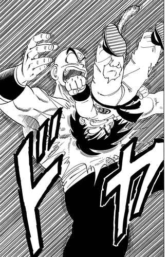 Goku stand dem Great Demon King Piccolo, der gekommen war, um ihn persönlich für das zu bestrafen, was er Tambourine angetan hatte, aber er fand sich dem Dämonenkönig nicht gewachsen. Er wurde vom mächtigen Overlord auf wenige Zentimeter seines Lebens gebracht und nur durch Yajirobe gerettet, der eingriff und ihn in Sicherheit brachte.