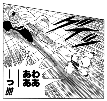 Piccolo schießt laserähnliche Energiestrahlen aus seinen Augen, in diesem Beispiel nutzt er sie, um Krillins Zielsuchangriff auf das 23. Tenkaichi Budokai.
