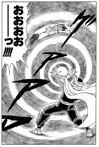 Piccolo in seinem Kampf gegen Goku keine andere Möglichkeit und greift auf diese verheerende Technik zurück. Nachdem er seine Arme verschränkt und jede Unze Ki, die er in seinem Körper bewältigen kann, gesammelt hat, entfesselt er alles in einer zerstörerischen radialen Explosion, bläst Menschen weg und ebnet die Umgebung vollständig ein.