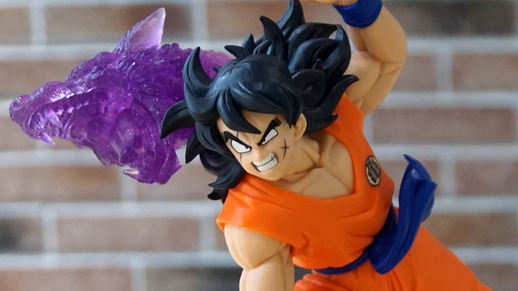 Miyoshi: Ja. In Wirklichkeit hatte Yamcha nie die Chance, seinen Roga Fufu-Ken (Wolf Fang Fist) im Saiyajin-Bogen loszulassen, aber wir haben uns die Freiheit genommen, den unserer Meinung nach coolsten Look von Yamcha mit seiner großartigsten Technik zu kombinieren.
