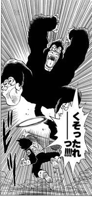 Mitten in ihrem Kampf regenerierte sich plötzlich Gohans Schwanz, was dazu führte, dass er auf Vegetas künstlichen Mini-Mond reagierte und sich in einen Great Ape verwandelte!
