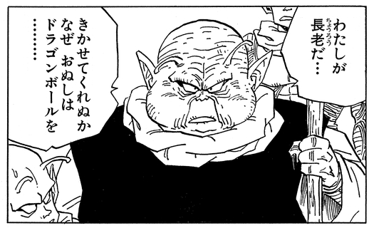 Hier ist ein weiteres bekanntes Gesicht – Elder Muri, der Anführer eines der Dörfer, die von Frieza und seinen bösen Kohorten angegriffen wurden. Trotz der Anwesenheit von Zarbon und Dodoria gelang es Elder Muri auf wundersame Weise, drei Späher zu vernichten. Er erschien auch später in der Serie, als Goku auf der Suche nach einem neuen " Kami " für die Erde auf dem New Planet Namek ankam.