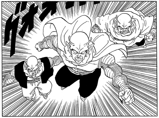 Diese tapferen jungen Namekianer stürmten los, um sich der Frieza Force zu stellen. Obwohl sie keine Namekianer vom Kriegertyp waren, hatten sie jeweils Machtstufen von ungefähr 3.000. Als Vegeta seinen Angriff auf die Erde unternahm, war ihm bereits bewusst, dass die Namekianer extreme Kampfkünste besaßen. Es scheint, dass die Stärke der Namekianer im ganzen Kosmos bekannt ist.