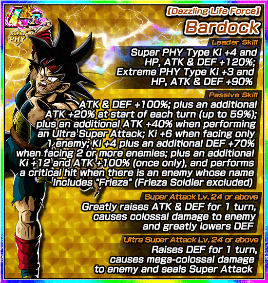 Extreme Z-Battle "Dazzling Life Force Bardock" ist eröffnet! Wie oben erwähnt, ist dies das Ereignis, bei dem Sie die neue Bardock- Einheit extrem Z- Bardock , nachdem Dokkan ihn zu LR erweckt hat! Schließe dieses Event bis Level 10 ab, um auf jeder Stufe "Bardock (Rainbow)"-Erweckungsmedaillen zu erhalten und sie zu verwenden, um Bardock Z- erwecken zu neuen Höhen der Macht!