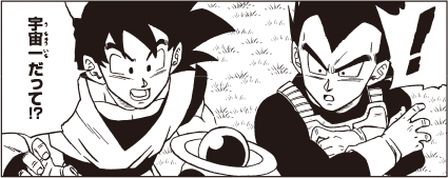 Macki benutzt Chichi und Bulma , um Goku und Vegeta zur Erde zu rufen, und bittet um ihre Hilfe beim Schutz des Planeten Cereal vor den "Stärksten im Universum". Dann bietet er an, die beiden Saiyajins zum Planet Cereal zu eskortieren, wo Granolah warten würde.