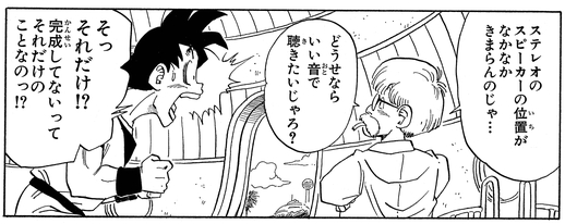 Die Art und Weise, wie Dub darauf besteht, ein Radio im Auto zu haben, erinnert ein wenig an Dr. Brief, der über die perfekte Position nachdachte, um die Lautsprecher in dem Raumschiff zu installieren, das er für Goku umbaute.