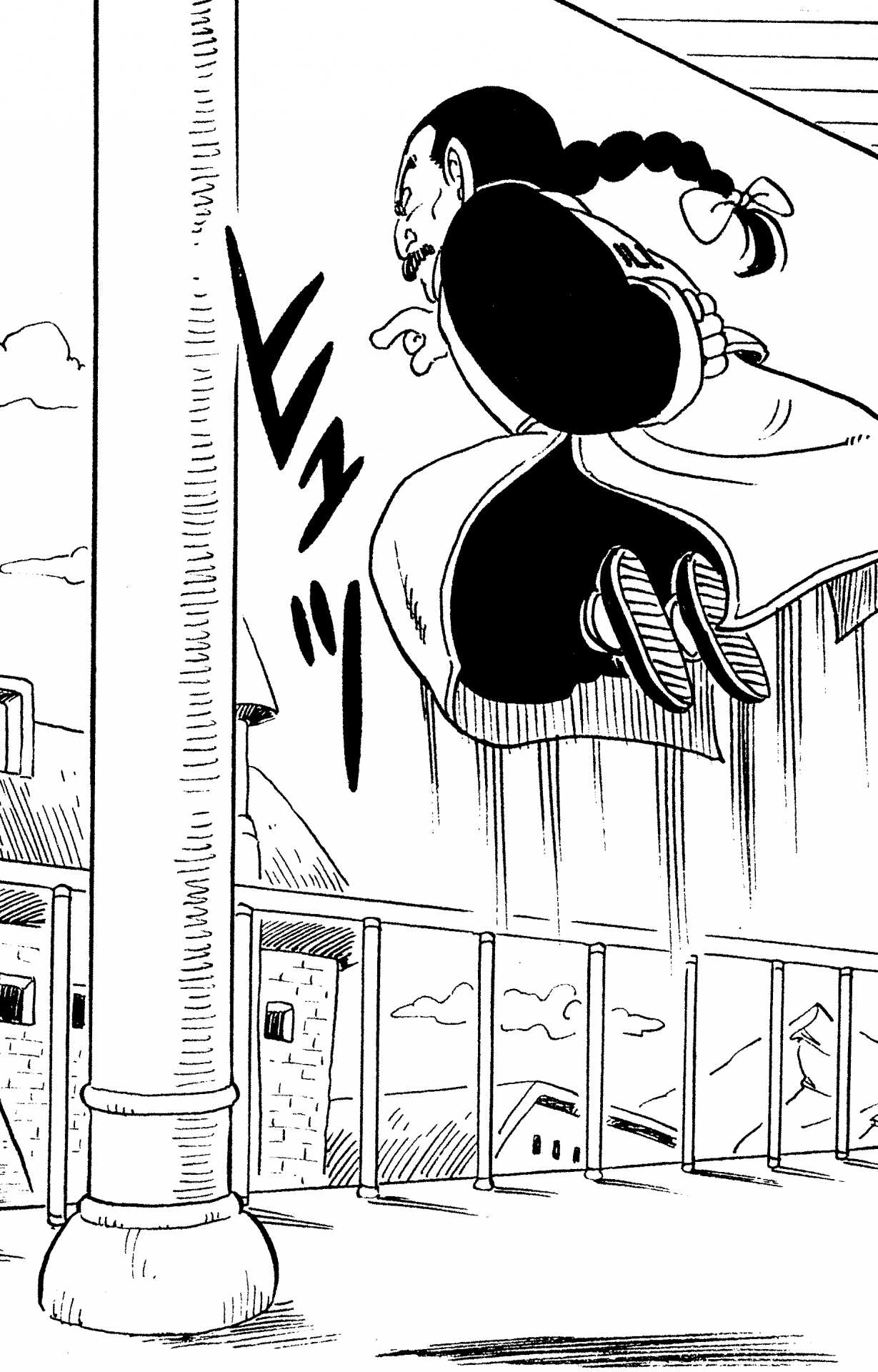 Taopaipai, der größte Attentäter der Welt, wird von der Red Ribbon Army angestellt. Er benutzte eine Säule des Hauptquartiers als provisorischen Flugapparat und jagte Goku bis zum Karin Sanctuary.