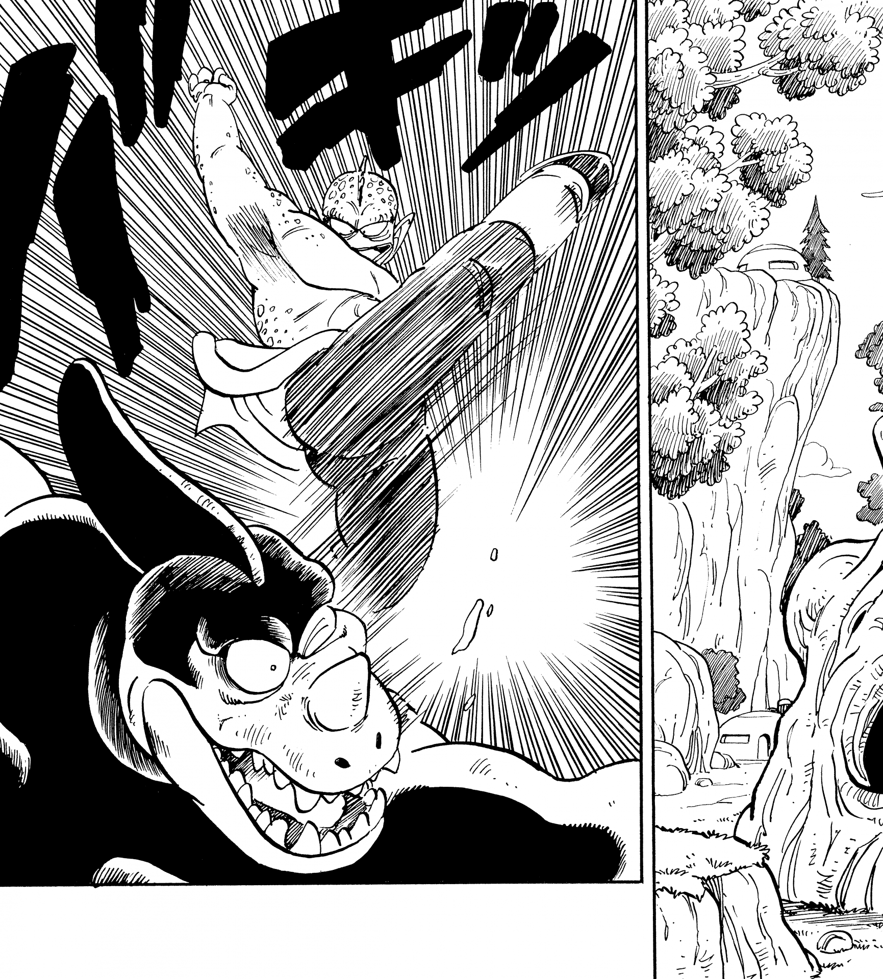 Und da hast du es! Vom Red Ribbon Army Headquarters zum Karin Sanctuary sind es übrigens etwa 2.300 km Luftlinie. Können Sie glauben, dass Taopaipai es geschafft hat, den ganzen Weg dorthin zu schaffen, indem er auf dieser Säule reitet? Verrücktheit...