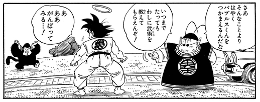 Als Goku ankommt und darum bittet, trainiert zu werden, um die Welt vor dem bevorstehenden Angriff der Saiyajin zu retten, beginnt Kaio damit, ihn anzuweisen, Bubbles zu fangen.