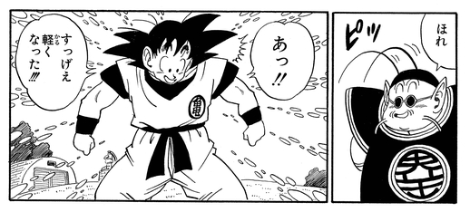 Als Goku zum ersten Mal unter Kaio trainierte, hielt er den Saiyajin für einen aufstrebenden Komiker, der kam, um die Kunst der Komödie zu studieren, und forderte ihn auf, ihn zum Lachen zu bringen, um sein Schüler zu werden. Der Lord des Nordens prahlte damit, dass es einen ziemlichen Witz braucht, um ihn zu knacken, aber Goku ließ ihn mit dem schrecklichen Wortspiel vor Lachen krümmen: „Ich weiß nicht einmal, was Komiker lesen!! Comics?!!!“ Es scheint, dass die Schwelle für das, was einen guten Witz ausmacht, etwas niedriger ist, als Kaio es sich vorgestellt hatte.