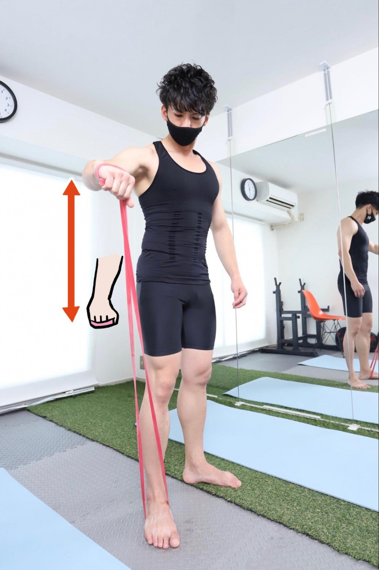 2. Strecken Sie das Band nach vorne in einer Diagonalen.
