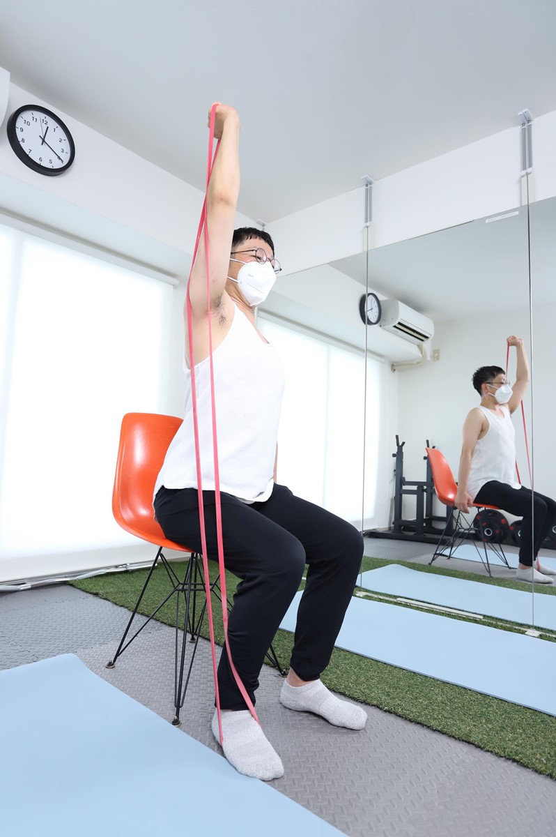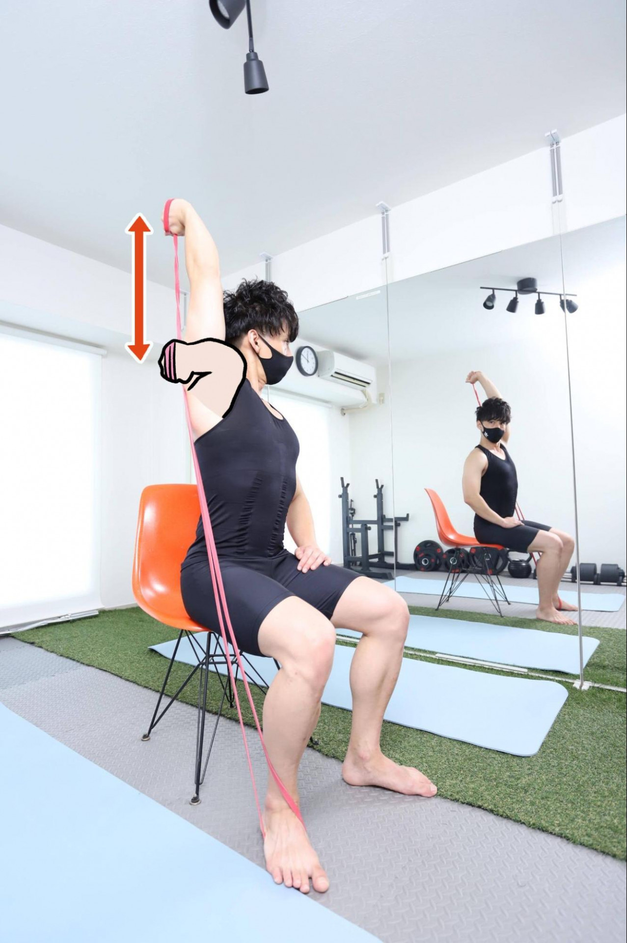 3. Strecken Sie das Band nach oben nur mit Ihren Schultermuskeln.