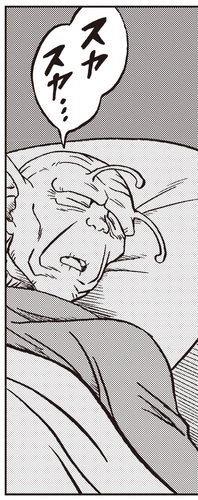 Wir haben gesehen, wie Piccolo im Schneidersitz eher in einem meditativen Zustand als in einem tiefen Schlaf schläft, aber nach dieser Jury zu urteilen, sieht es so aus, als ob Monaito es genießt, seine acht Stunden tief in einem schönen, bequemen Bett zu schlafen! Es ist vielleicht nicht das Passende, um über einen älteren Namekian zu sagen, aber wir finden sein schlafendes Gesicht absolut bezaubernd!