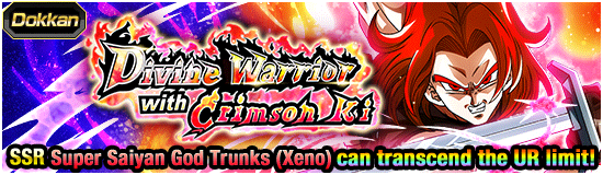 "Göttlicher Krieger mit Crimson Ki" läuft! Erhalte Awakening-Medaillen in diesem Event und Dokkan Awaken-Charaktere wie [Time Patrols letzte Hoffnung] Super Saiyan God Trunks (Xeno), die ihr Dokkan-Debüt in der Crossover-Beschwörung geben. Besiege den Crimson Divine Warrior, denjenigen, der gegen die Dunkelheit steht, und erhalte Erweckungsmedaillen!